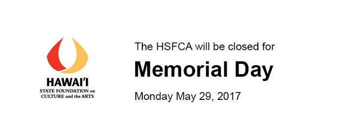 The State Foundation on Culture and the Arts will be closed on Monday, May 29, 2017 in observance of Memorial Day.